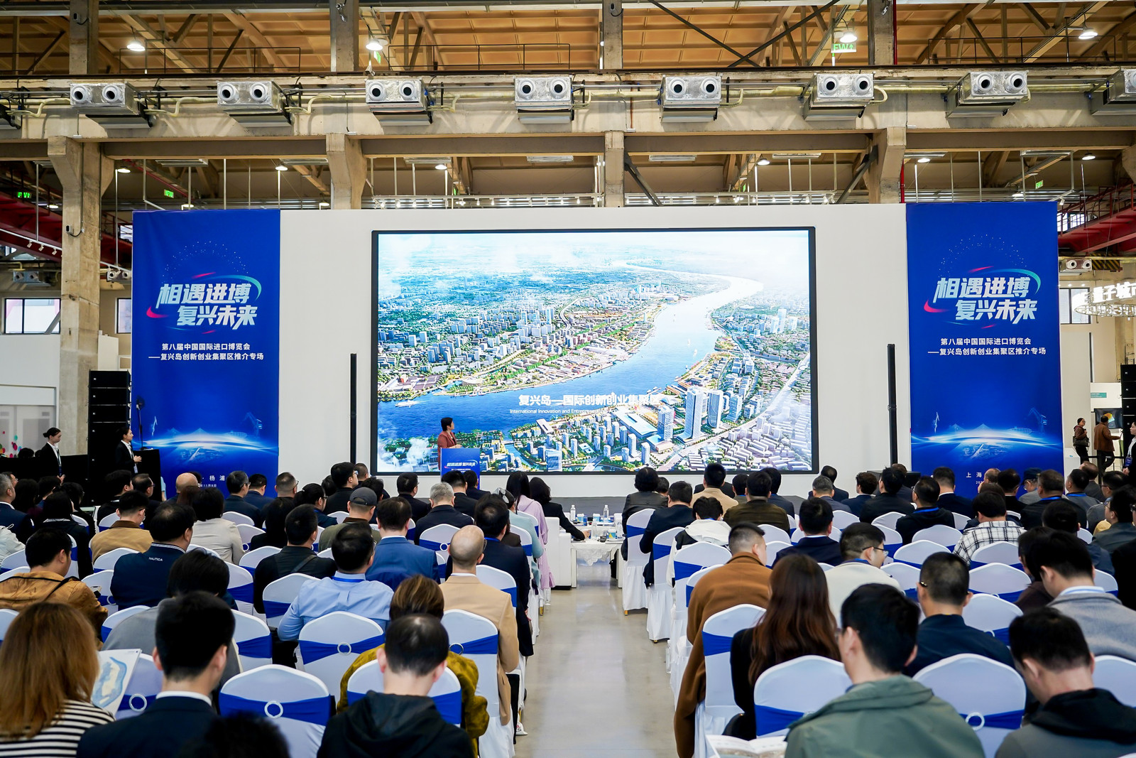 当前,复兴岛正围绕“数字智能岛、设计艺术岛、人民城市岛”定位加速建设。11月8日,“复兴岛创新创业集聚区推介专场”在杨浦复兴岛船台公园举行,近300名嘉宾包括进博会参展商、地产开发商、拟合作企业、金融机构等企业代表齐聚杨浦滨江,共话合作机遇,共探这座“黄浦江畔明珠”的发展新路径。