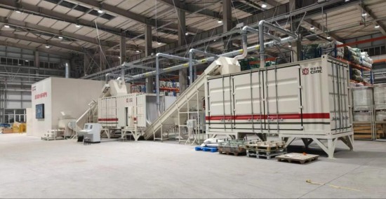 该移动工厂大小与标准集装箱差不多,可直接进驻风场或叶片贮存地,通过“分散式预处理+集中式深度加工”的双模式运作,突破传统固定式处理产线的局限,极大提升规模化作业效率。
