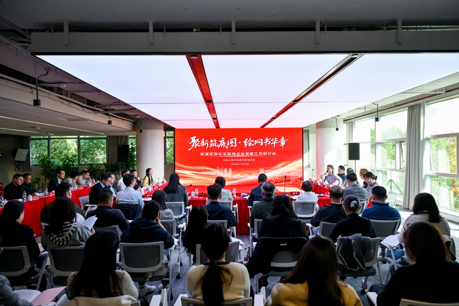 上海市委组织部部务委员徐树杰,杨浦区委常委、组织部部长秦丽萍,杨浦区委常委、宣传部部长施方,以及市委组织部、市委社会工作部有关处室、杨浦区相关部门和街道、高校、互联网企业和新兴领域基层党组织、“UP主”、“大V”及媒体代表齐聚一堂,共同探讨党建引领互联网企业发展新路径。