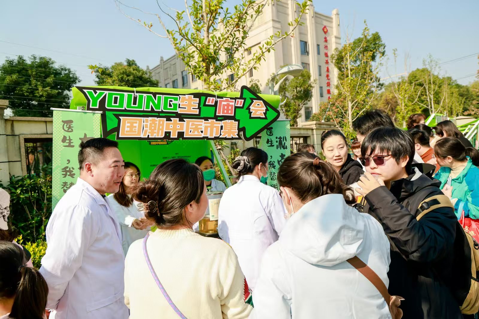 人民网上海11月22日电 今日,“YOUNG生‘庙’会”国潮中医市集,在宝山区庙行镇共康党群服务中心东茭泾畔开市。