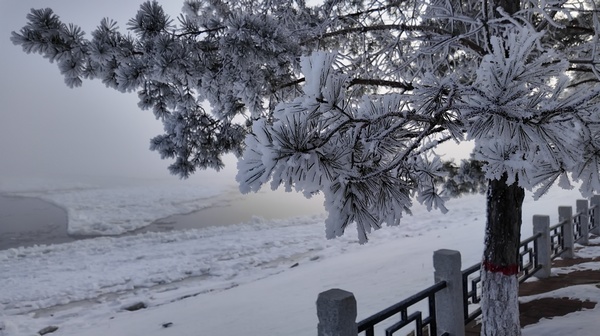 人民网哈尔滨11月5日电 (尚城)11月5日,黑龙江省大兴安岭地区呼玛县迎来今冬首场雾凇景观,中俄界江黑龙江呼玛镇江段雾霭升腾,江畔树木凝结起晶莹冰晶,与江面上缓缓流动的跑冰排相互映衬,构成一幅冬日浪漫图景,吸引众多市民游客驻足观赏。