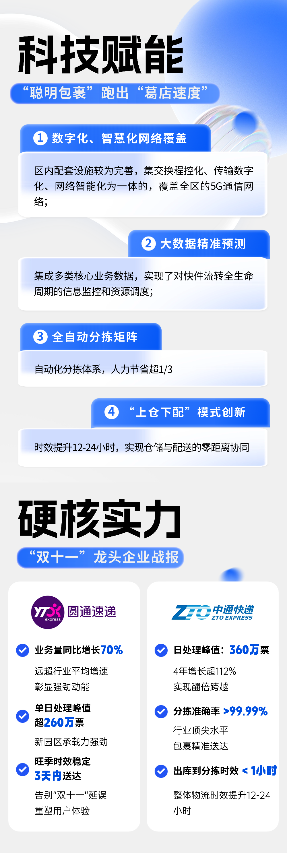 如果说十年积淀是葛店的“底盘”,那么科技创新、智慧赋能则是驱动它高速运转的“超级引擎”。今年“双十一”,包裹更快、物流更稳秘诀就在于每一个包裹都变得更“聪明”。