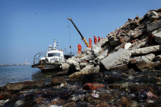 省地矿六队地质勘查二处主任闫春明把海上钻探比作“在流动的基地上施工”。