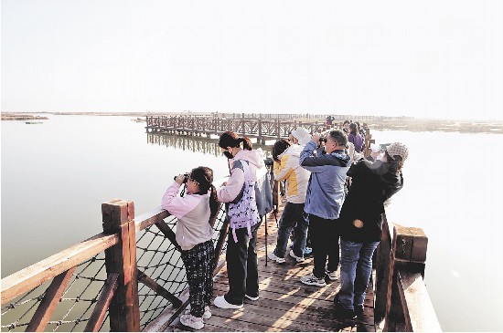 “鸟浪”现象是厚积薄发的必然。东营地处黄河入海口,是“东亚—澳大利西亚”与“环西太平洋”两大全球重要候鸟迁飞通道的交会点。山东黄河三角洲国家级自然保护区作为核心载体,拥有我国暖温带最完整、广阔、年轻的湿地生态系统,被专家誉为“鸟类国际机场”。2024年,“黄河口候鸟栖息地”作为“中国黄(渤)海候鸟栖息地(第二期)”的重要组成部分,成功列入《世界自然遗产名录》,生态价值获得国际权威认证。