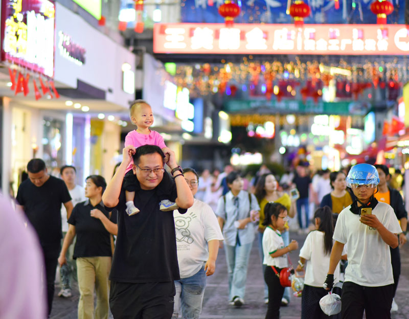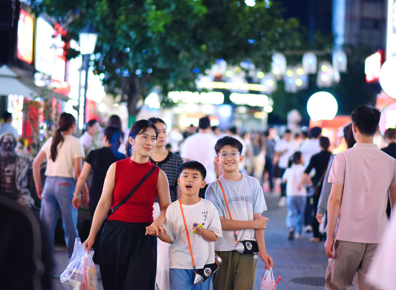 国庆中秋假期,巢湖街头张灯结彩,处处洋溢着热闹气息。市民或与家人携手漫步,或与朋友相聚畅谈,商铺前人头攒动,小吃摊香气四溢。处处可见欢声笑语,升腾的人间烟火气里,满是节日的温馨与惬意,勾勒出一幅祥和的假日图景。