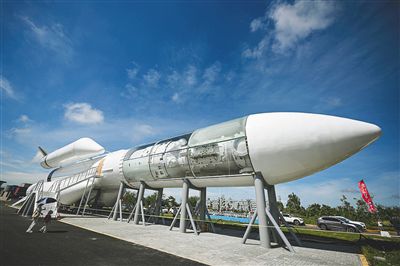 近日,位于海南文昌的文昌航天科普中心升级改造工程进入收尾阶段,并短期向公众免费开放,以检验场馆运营能力与服务水平,为后续正式开放奠定基础。经过本次改造,该中心的展陈内容升级为覆盖航天历史、火箭发射、空间科学、未来探索等多维主题的沉浸式体验体系。图为10月7日在文昌航天科普中心拍摄的长征五号B运载火箭模型。新华社记者 蒲晓旭 摄