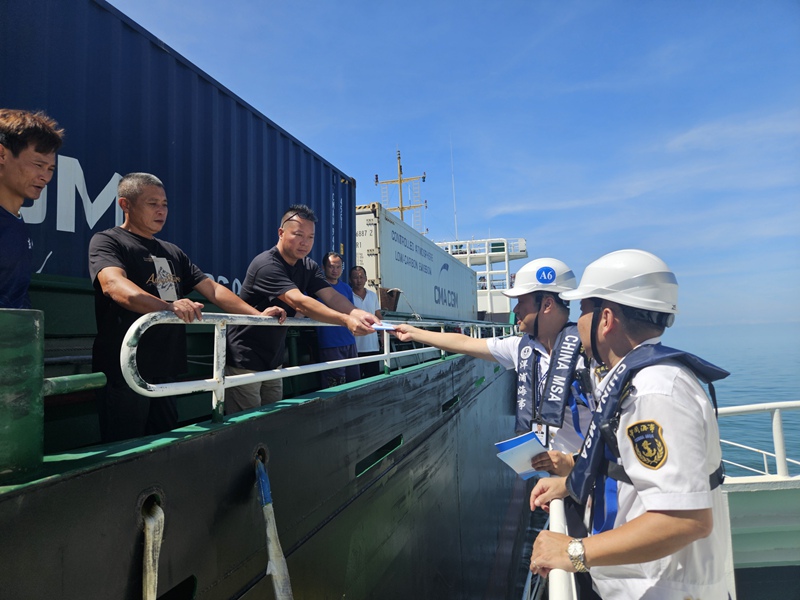 海事执法人员发放相关宣传资料。吕东星摄