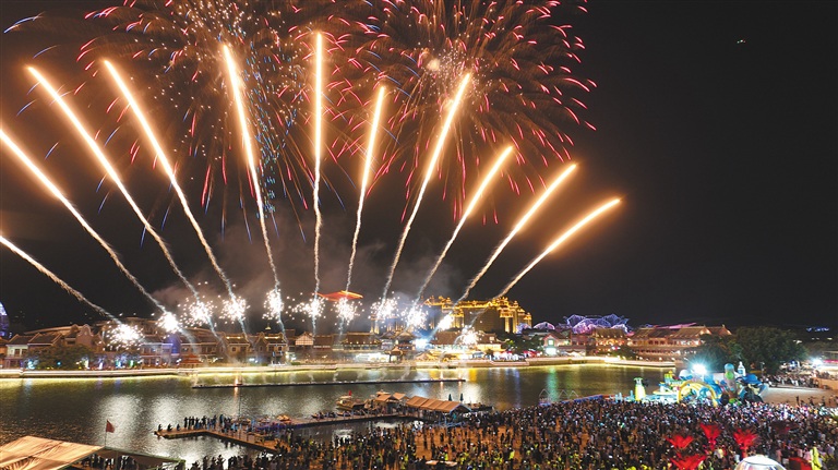 10月6日中秋夜,儋州海花岛旅游度假区上演烟花秀。