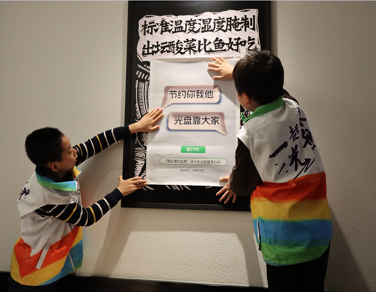 青少年志愿者积极参与“制止餐饮浪费”行动。中国经济网记者 李凡/摄