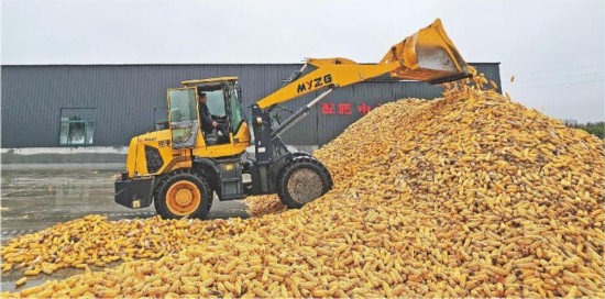 10月9日,平原土地鲁望农业发展有限公司正在收储玉米。(曾轲修 从涛报道)