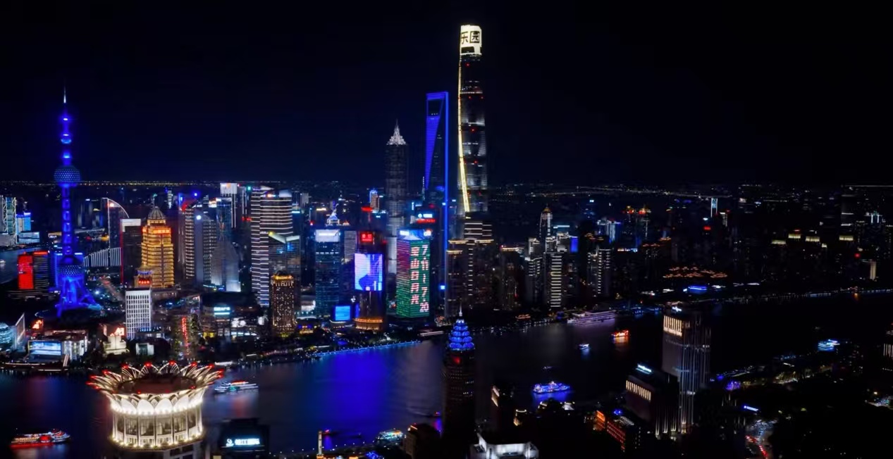 10月13日晚,上海黄浦江上晚风习习。